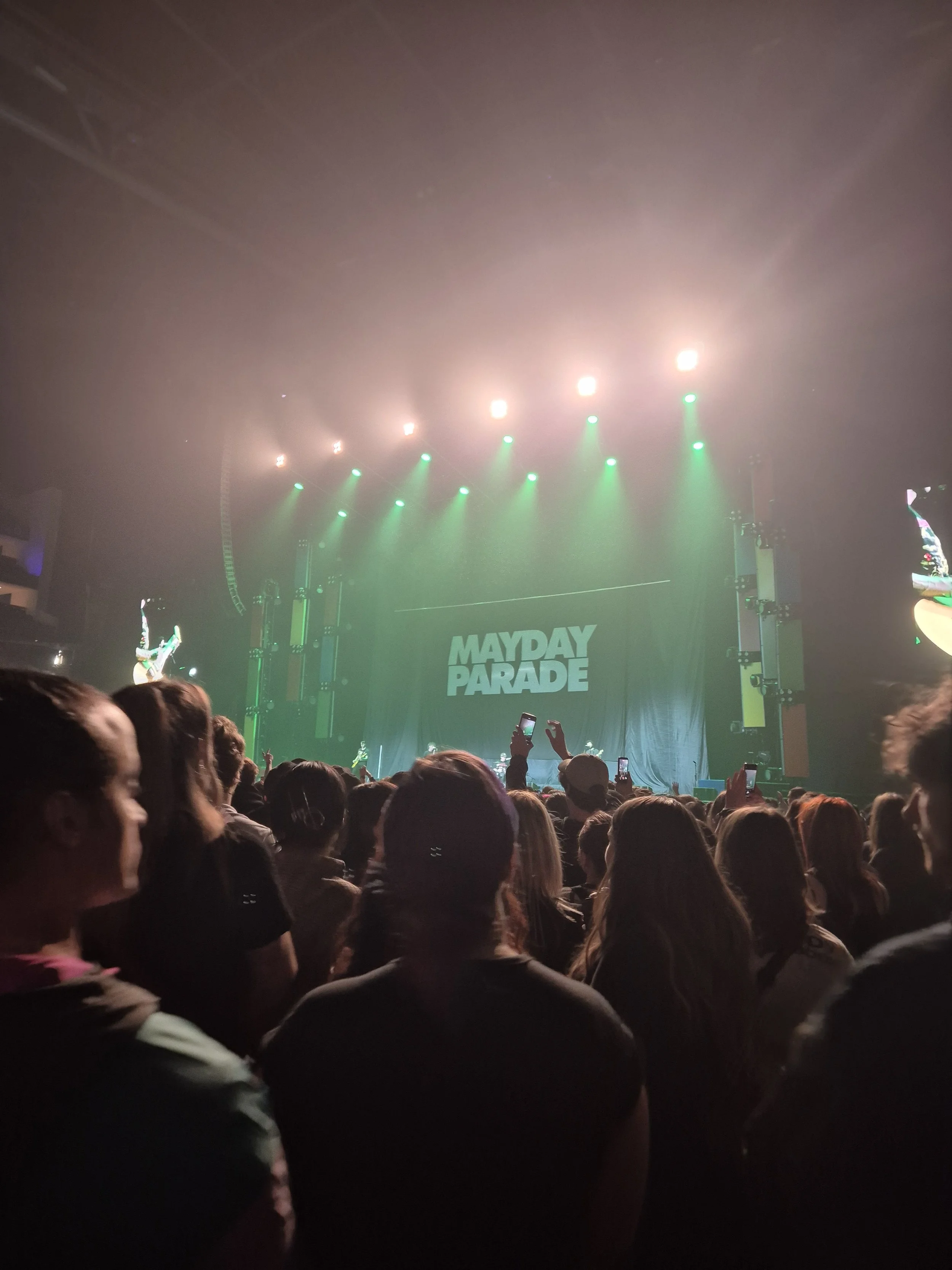 Then came Mayday Parade, veterans in their own right, who transformed the arena into a shared hypnosis. Derek Sanders delivered Jamie All Over and Miserable at Best like someone flipping through a scrapbook. Each page flooded with confessional fists-in-the-air catharsis. Mayday’s longevity mirrors All Time Low’s, and the crowd responded accordingly; entire rows were shouting lyrics with the muscle memory of fans who’ve done it for 15 years. Mayday Parade summoned the ghosts of warped summers, friendships, theater stages, and bedroom singalongs. By the time they left, nostalgia was atmosphere.