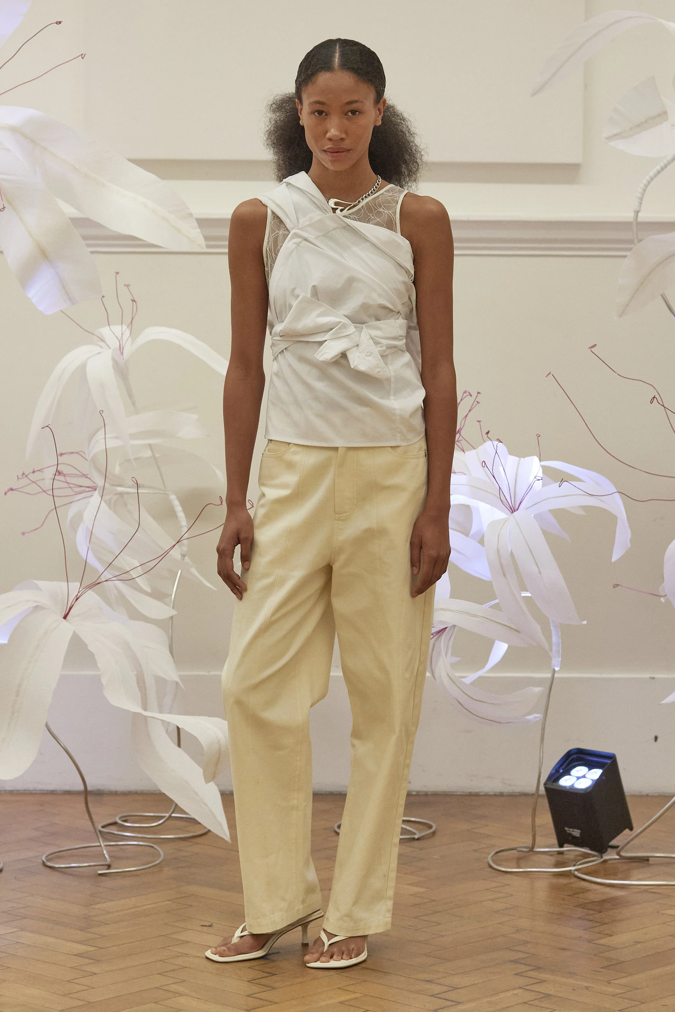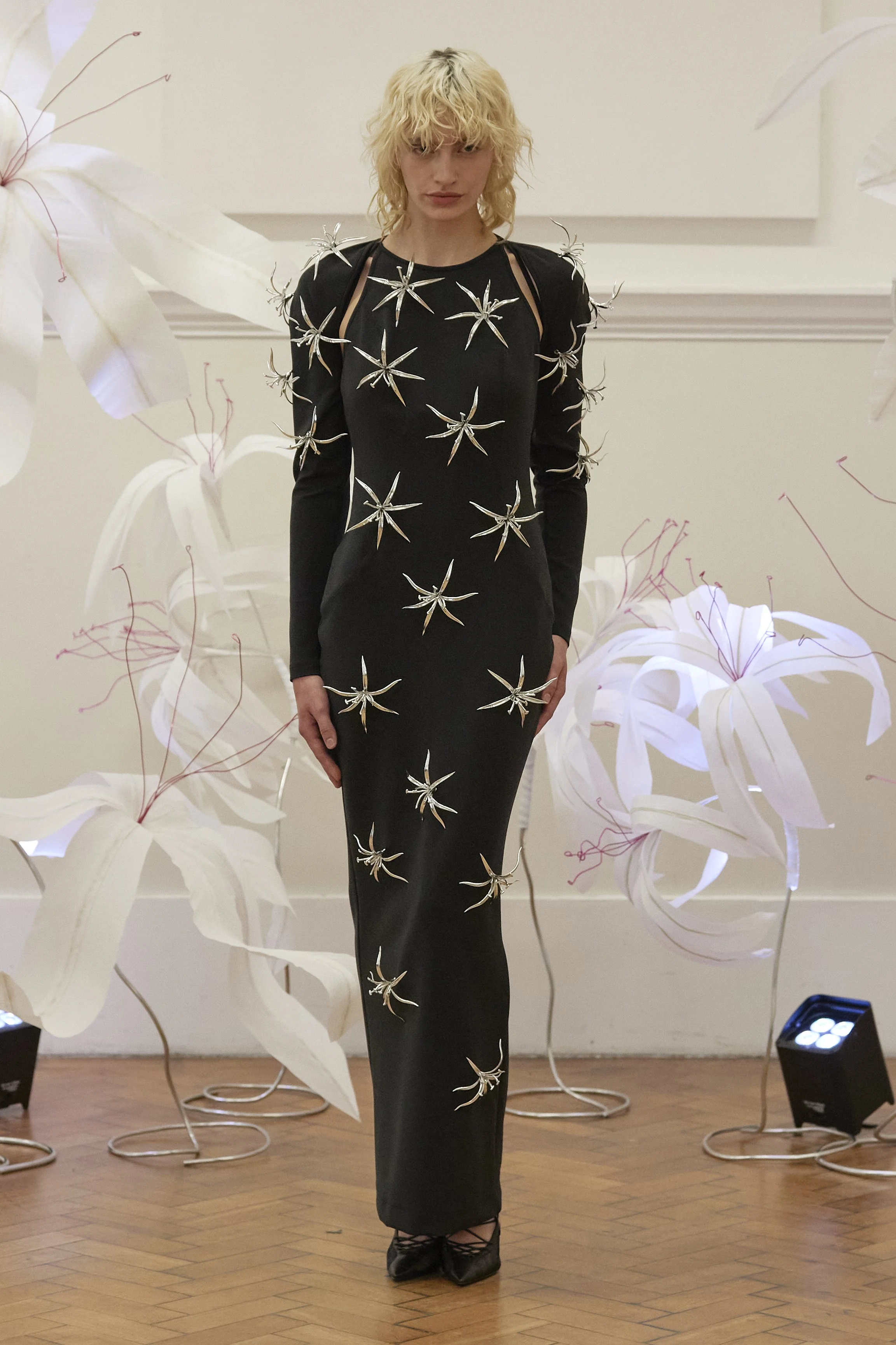 R.J: How did the designer’s personal experience of discovering the Crinum asiaticum during a summer jog lead to the concept for the SS25 collection?