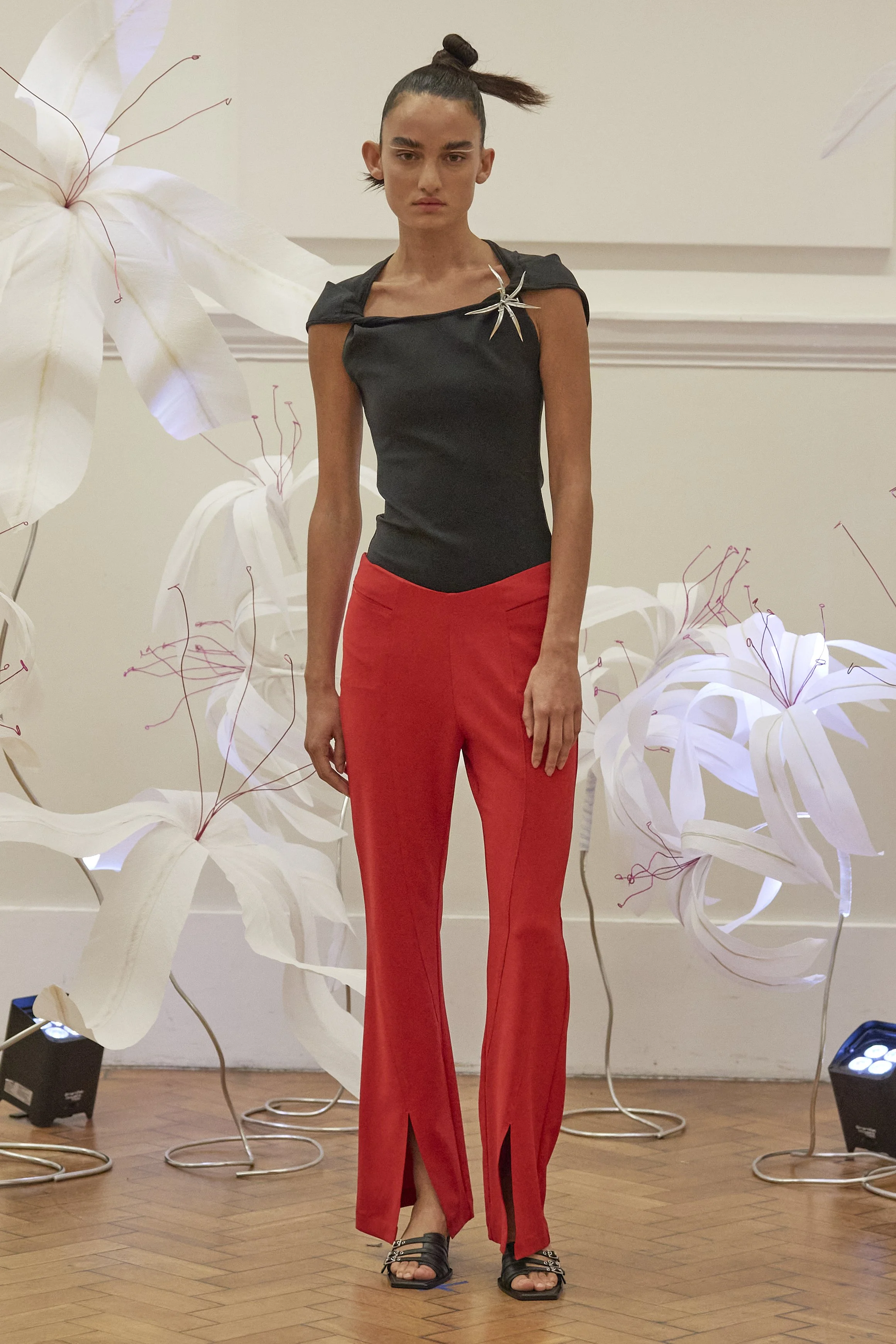 R.J: What can you tell us about the colour palette for the SS25 collection, particularly the use of RAY CHU’s signature fiery red alongside other tones?