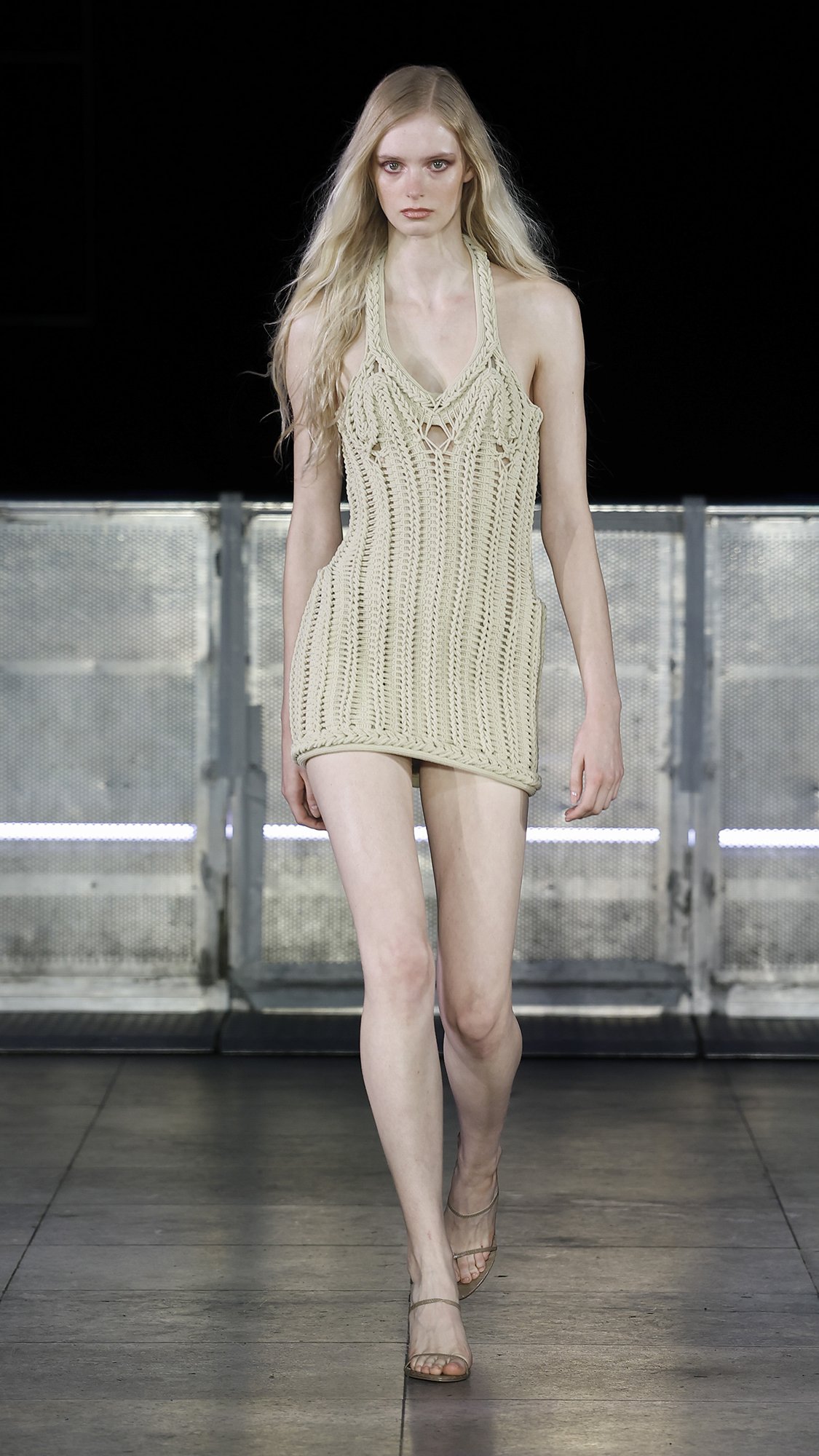 Underground in Dalston’s EartH Hall, an electronic baseline begins. Mark Fast, a designer renowned for his luxury, form-fitting knitwear, returns to London Fashion Week with a collection that imbues the pulsing energy of the club scene with the elemental power of the coastline.