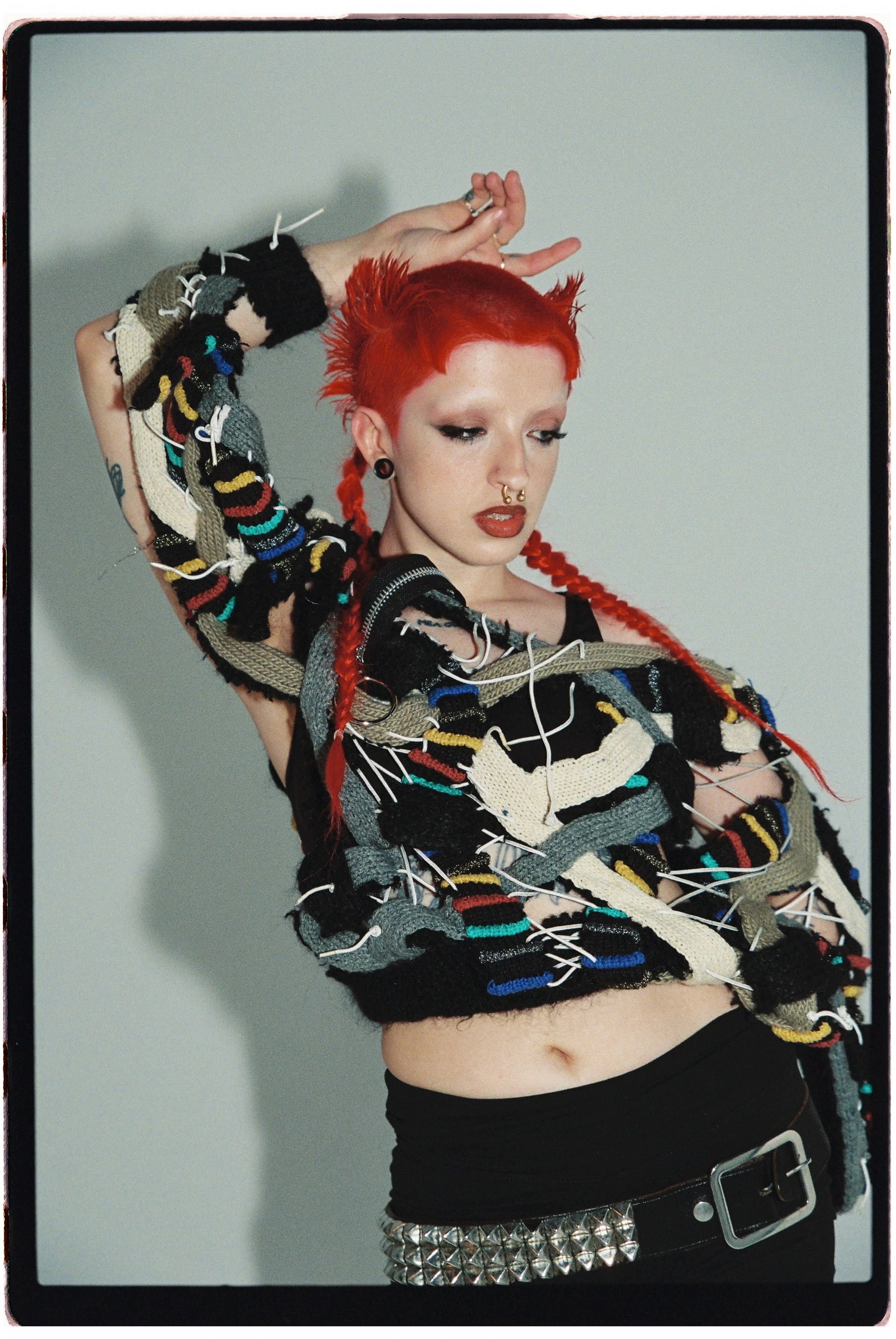 Knit jumper: DOG HJK @doghjk | Tights: Calzedonia @calzedonia, Hotpants | belt and stockings: Vintage | Shoes: Jeffrey Campbell @jeffreycampbell