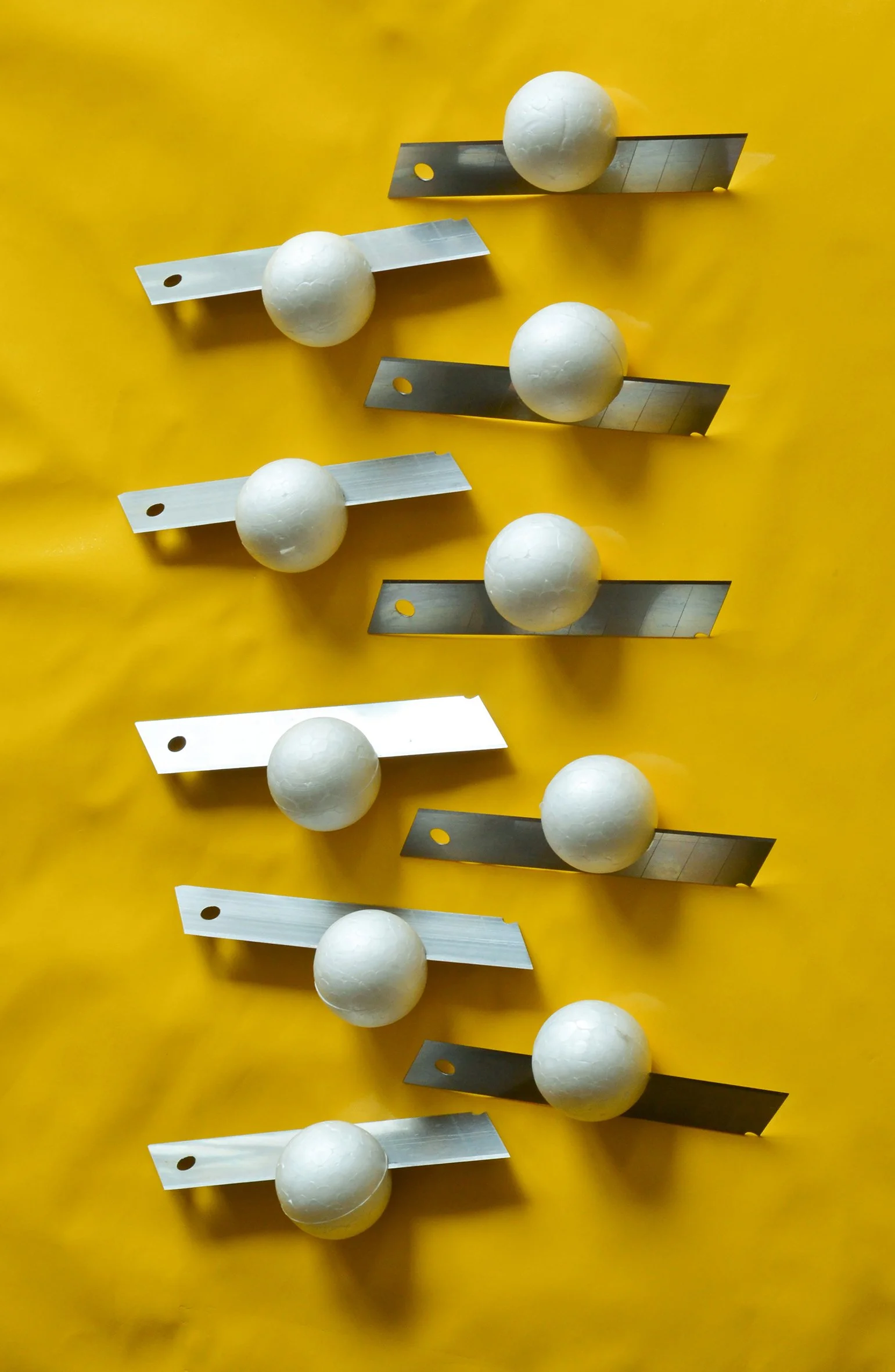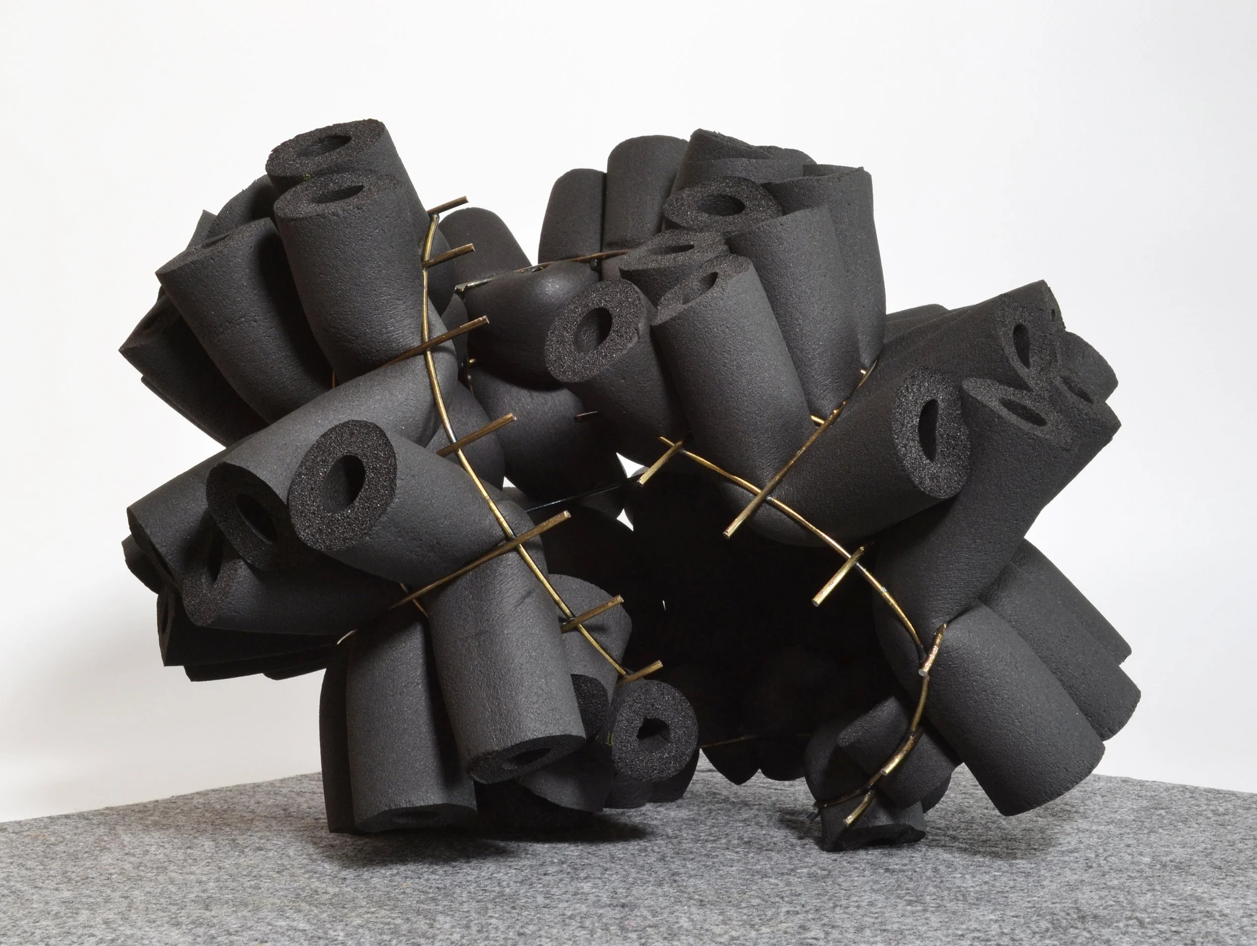 Haynes’ mixed media work, using materials such as fabric, foam, tubing and grid forms, combine a rhythmical, systematic design and geometric structure with softer, flexible elements that take shape more organically. Haynes is led primarily by an intuitive response to these contrasting or opposing materials, leading to often unexpected outcomes. These playful interactions, surprising and yet familiar, explore the tension created between balance and counterbalance, animated through the use of colour, light and shadow.